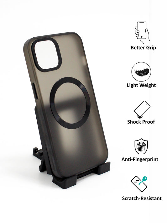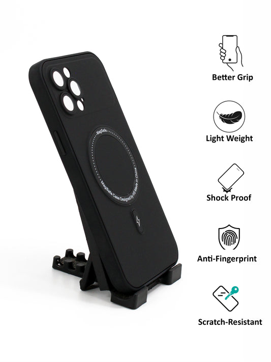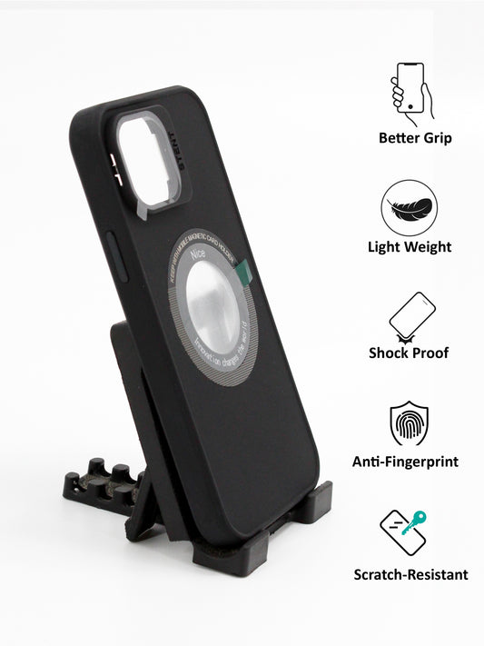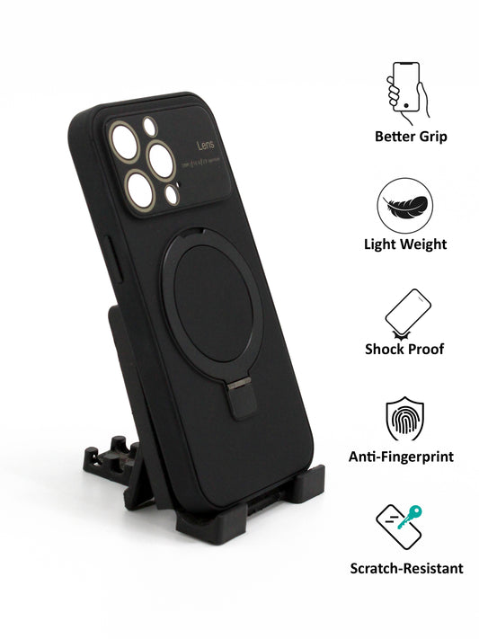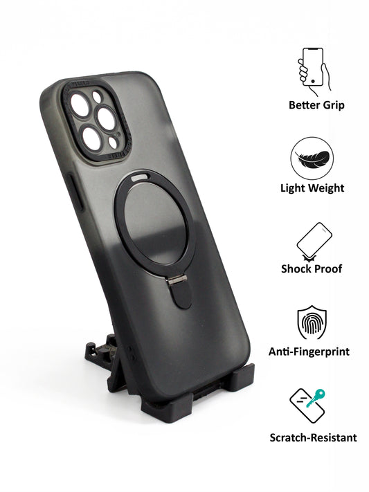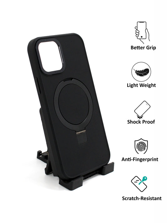 IPhone Premium Soft Polycarbonate Case/Cover | Magsafe Wireless Magnetic Support | Ring Stand, Black Color