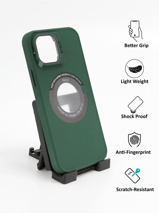 IPhone Premium Soft Polycarbonate Case/Cover | Magsafe Wireless Magnetic Support | Ring Stand, Green Color