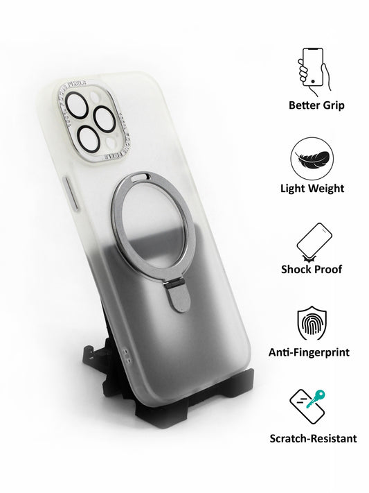 IPhone Premium Soft Polycarbonate Transparent Case/Cover | Ring Stand, White Color